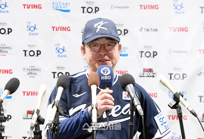 대한민국 야구 대표팀의 류중일 감독이 2일 고척스카이돔에서 열린 쿠바와의 두 차례 평가전을 모두 승리한 뒤 인터뷰를 하고 있다. 2024. 11. 2.