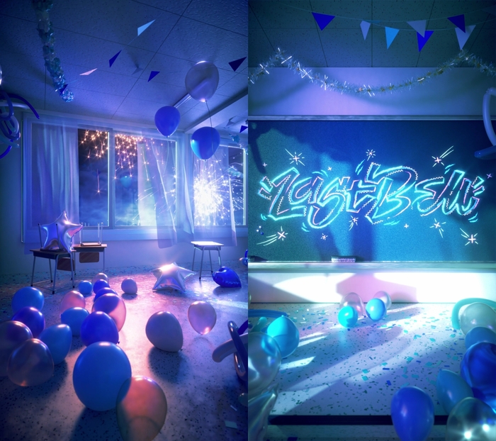 영상 속 화면은 어스름한 밤의 교실을 비춘다. 해가 지기 전까지 축제를 즐긴 듯 풍선과 콘페티가 흩뿌려져 있고, 창문 너머로 폭죽 소리와 함께 불꽃놀이가 펼쳐진다. 칠판에는 분필로 그린 듯한 ‘Last Bell’ 로고가 빛나며 영상은 마무리된다. 적막한 교실과 이를 둘러싸고 있는 화려한 축제의 흔적들이 대조되어 신보에 대한 궁금증을 자극한다.