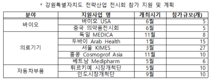 또한, 도는 바이오, 자동차 부품 등 도 전략산업의 수출 비중을 높이기 위해 해외 전시회 참가 지원 사업을 집중 추진하고 있다.