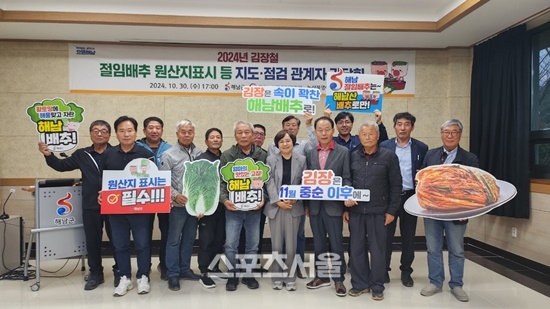 [스포츠서울|조광태기자] 저탄소 녹색성장을 선도하는 전남 해남군은 김장철을 맞아 11월 말까지 관내 절임배추 생산시설 700개소를 대상으로 배추, 소금 등에 대한 원산지 표시단속을 실시한다.