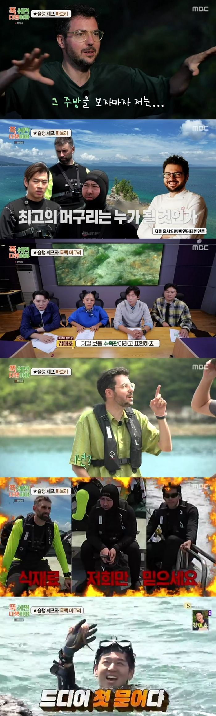 뿔소라, 모시조개 등이 올라오긴 했지만 4인용 요리를 하려면 턱없이 부족한 양. 마음이 급해진 파브리는 “야, 니퍼트 후배. 왜 더 안 잡았어?”라며 닦달해 폭소를 안겼다.