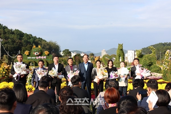 한편, 국화 축제는 11월 17일까지 진도개테마파크, 향토문화회관, 철마공원 일원에서 진행하며, 작년과 비교해 전시회 규모를 30% 이상 확대했다. 농업기술센터에서 재배한 국화와 농가소득을 증대하기 위해 농가에 위탁하여 생산한 국화 등 국화 13만 본으로 만든 다양한 작품을 7개 정원에 전시 중이다.