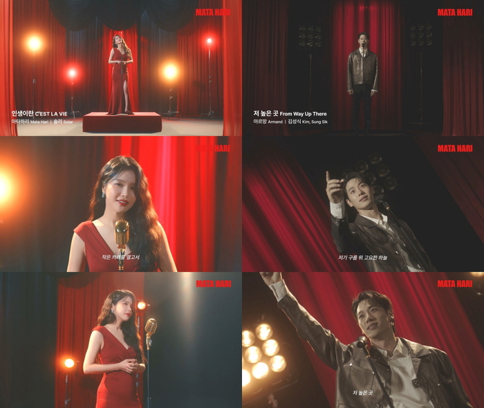 ‘마타하리’의 무대를 연상시키는 강렬한 레드 컬러의 커튼을 배경으로 ‘마타하리’ 역 솔라, ‘아르망’ 역 김성식이 등장해 ‘인생이란’과 ‘저 높은 곳’을 각각 불렀다. 극 중 배역에 완벽 몰입한 솔라와 김성식은 서정적인 멜로디와 더불어 고혹적인 솔라의 비주얼과 순수한 김성식의 매력이 절묘한 조화를 이뤘다는 평가다.