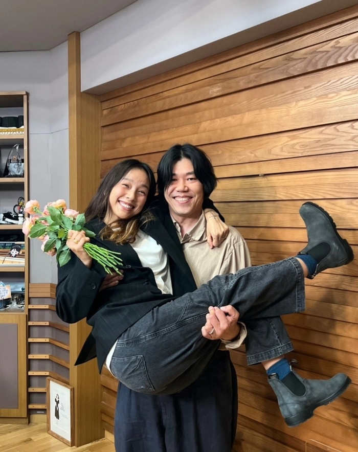 이상순은 분홍 장미를 든 이효리를 번쩍 안아 든 채 활짝 웃고 있다. 이어진 사진에는 두 사람이 다정하게 포옹한 채 카메라를 바라보고 있다.