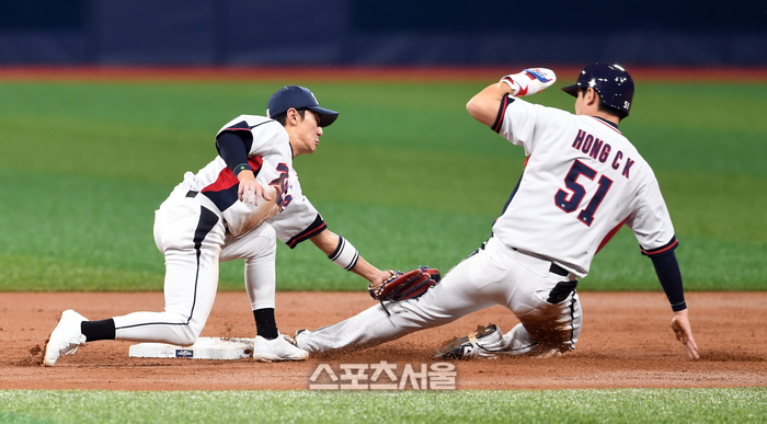 투수진은 강력했다. 고영표가 대표팀 선발로 나서 3이닝 2실점을 기록했고, 곽빈이 상무 선발로 등판해 3이닝 1실점이다. 둘 다 1회에만 실점했고, 2~3회는 무실점으로 막았다.