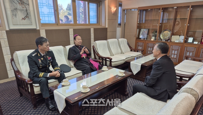 미사에 앞서 서상범 주교는 권대일 국립현충원장과 차담을 하며 “국가원수·애국지사·순국선열 등 국가의 발전을 위해 명예로운 일들을 한 사람들과 나라를 위해 목숨을 바친 장병들을 기리는 장소를 지켜주셔서 감사하다”라고 인사했다.