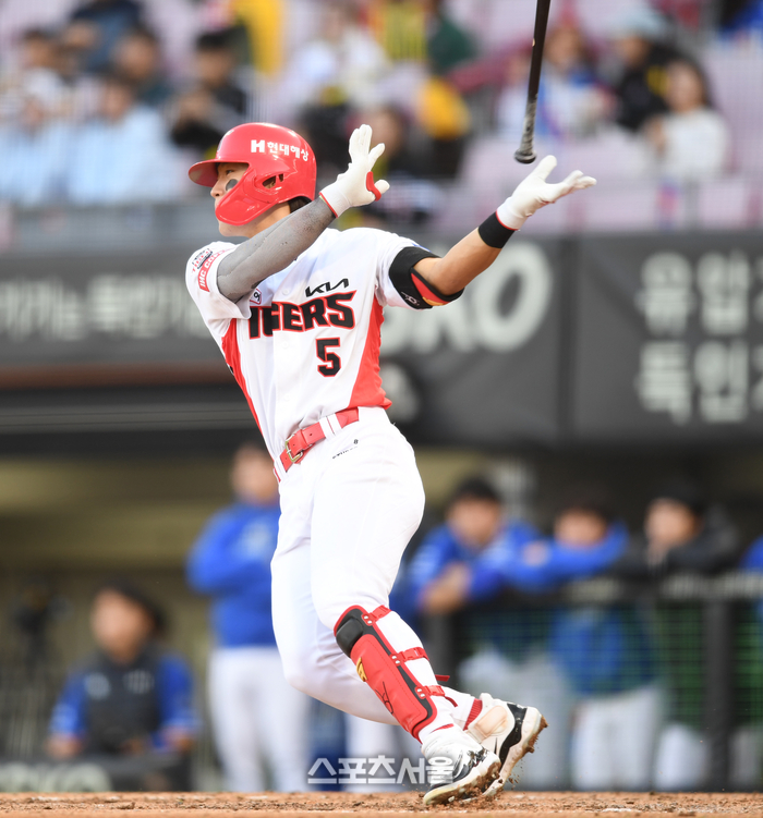 문제는 정규시즌 이후다. 한국시리즈에서 방망이가 살짝 식었다. 다섯 경기 모두 나섰고, 17타수 4안타, 타율 0.235에 그쳤다. 출루율은 0.409로 높았으나, 장타율은 0.412가 전부다.