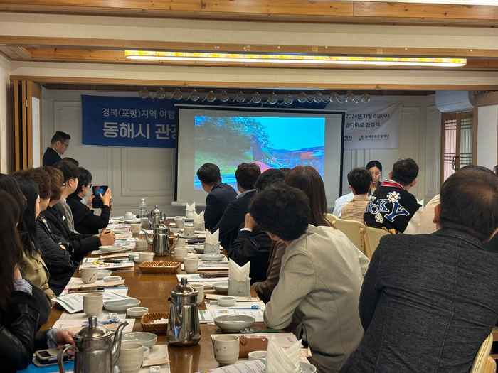 [스포츠서울ㅣ김기원기자]동해시(시장 심규언)는 올 연말부터 경상권역에서 동해시를 연결하는 동해선 개통에 대비, 지난 11월 6일 포항에서 경북 포항지역 단체 관광객 유치를 위하여 여행업계 관계자들을 대상으로 관광홍보설명회를 개최하였다고 밝혔다.