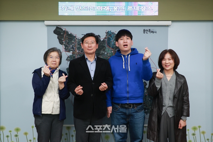 〔스포츠서울│수원=좌승훈기자〕이상일 용인특례시장은 8일 시장 접견실에서 처인구 역북동 (구)차량등록사업소 자리에 개관한 ‘가상현실 스포츠 체험센터’ 외벽 벽화 조성에 참여한 작가와 발달장애인 예술공동체 ‘아뜨리에 플레이 투게더(A.P.T)’ 관계자들을 만나 “경기도 최초로 개관한 ‘가상현실 스포츠 체험센터’ 외벽을 멋진 그림으로 꾸며주셔서 감사한 마음”이라고 인사했다.