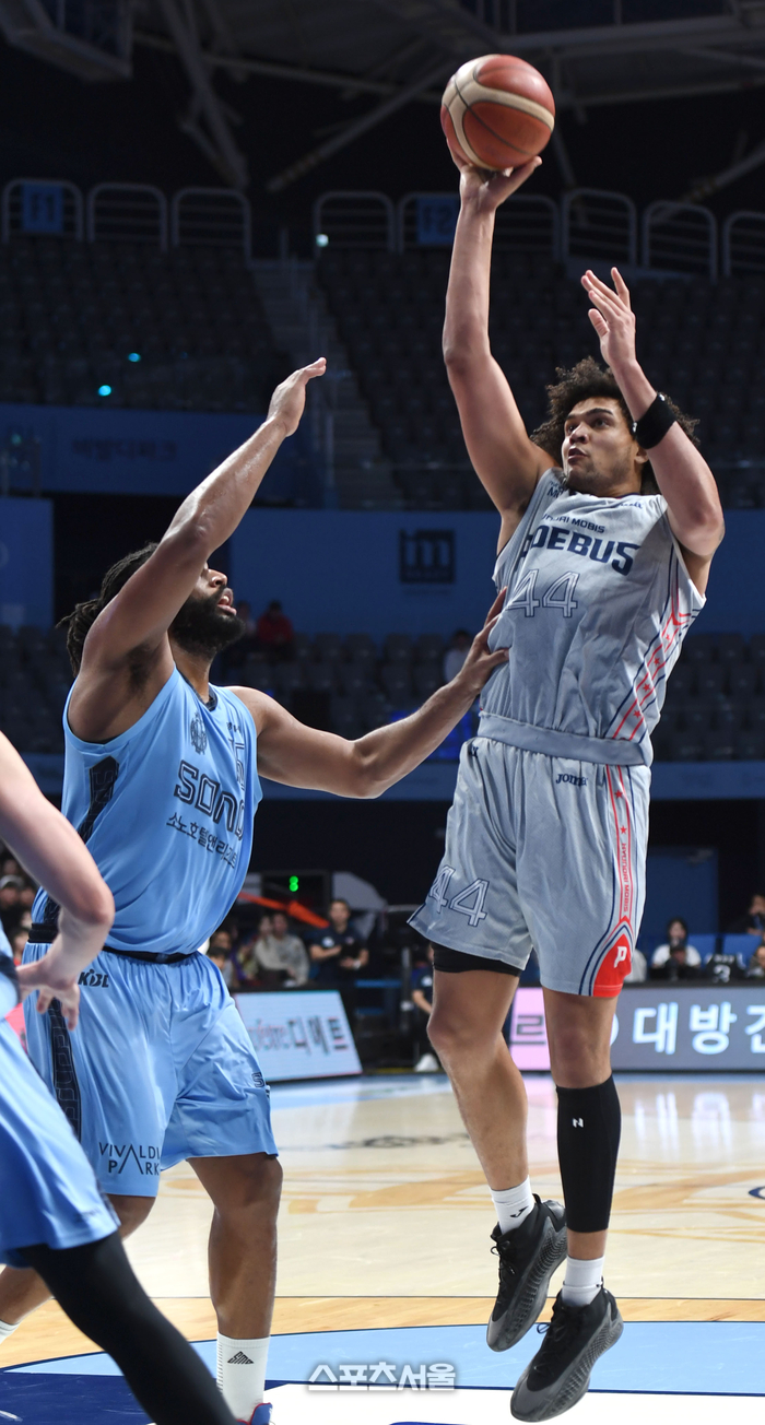 울산 현대모비스 프림이 13일 고양 소노 아레나에서 열린 2024~2025 프로농구 고양 소노와 경기에서 슛을 시도하고 있다.