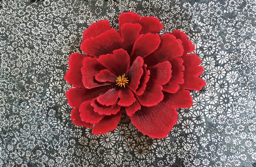 자신만의 창의적인 소재를 선택하여 조각내고 그라인더로 갈고 가공하여 분청자기의 색감과 질감을 표방하고 국화문양을 인용하여 현대적인 재료를 사용하여 평면회화를 구현하였다.