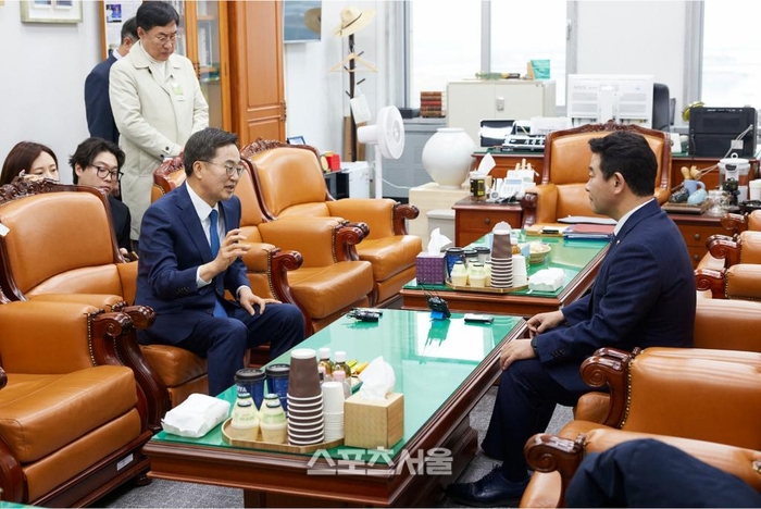 〔스포츠서울│수원=좌승훈기자〕김동연 경기도지사는 20일 국회에서 박정 국회 예산결산특별위원장을 만나 거꾸로 가고 있는 정부 재정 정책을 바로 잡아줄 것과, 경기도 역점사업의 적극적 지원을 요청했다.