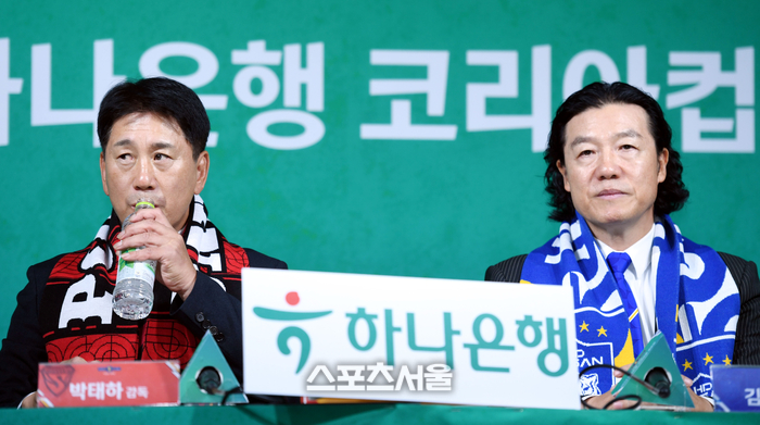 앞서 K리그1 우승을 조기에 확정, 리그 3연패를 달성한 김 감독은 “코리아컵은 또다른 느낌이다. 반드시 우승해서 팬에게 2관왕 기쁨을 전하겠다”고 웃었다. 올 시즌 주력 요원 줄부상 등에도 부임 첫해 리그 파이널A 진출을 이끈 박 감독은 “선수의 땀과 노력으로 여기까지 왔다. 헛되지 않게 꼭 우승컵을 들어 올리겠다”고 말했다.