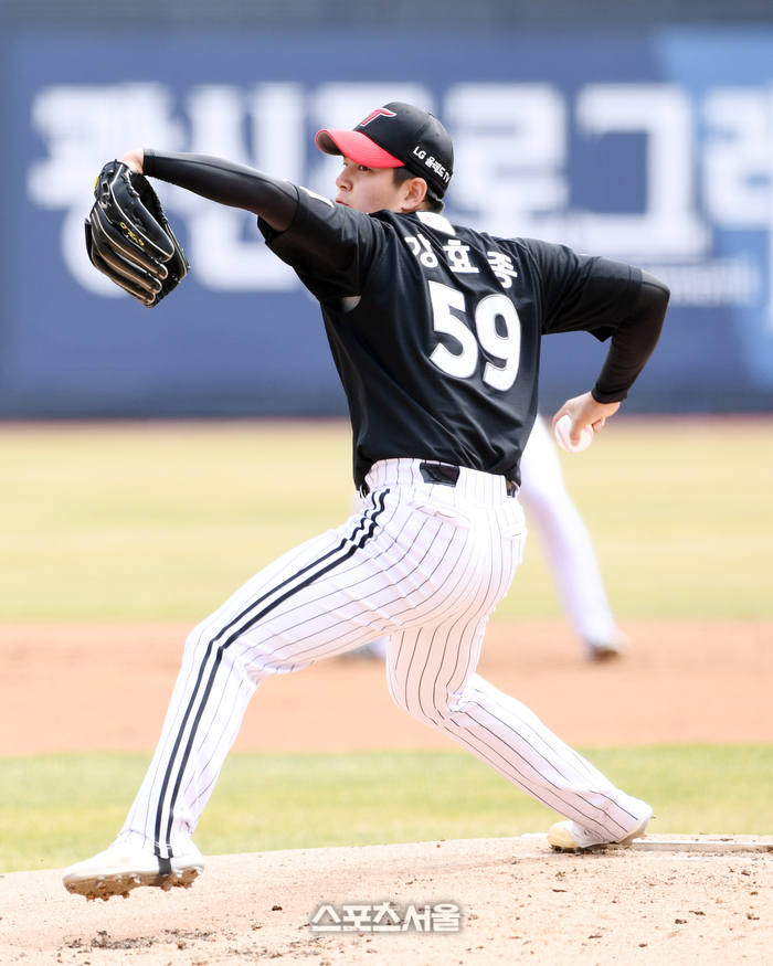 충암고 출신 강효종은 2021년 LG 1차 지명자다. LG가 애지중지 아낀 자원이다. 시작부터 펄펄 날지는 못했다. 2022시즌 1군에 데뷔했고, 한 경기 등판했다. 10월7일 NC전에서 5이닝 2실점으로 승리투수가 됐다.
