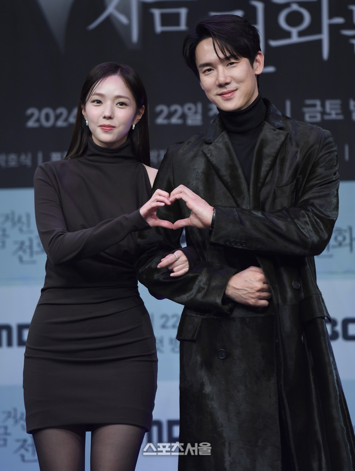 채수빈-유연석이 21일 상암동 MBC에서 열린 새 금토드라마 ‘지금 거신 전화는’ 제작발표회에서 포토타임을 갖고 있다.