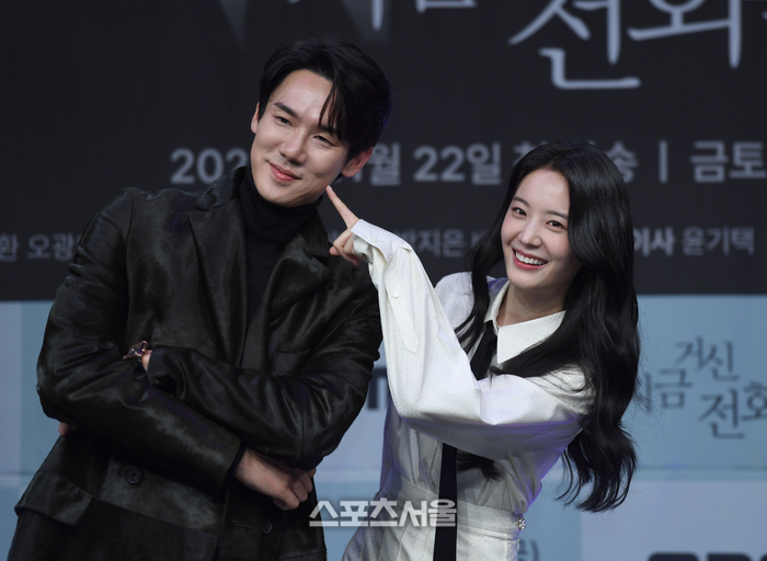 유연석-장규리가 21일 상암동 MBC에서 열린 새 금토드라마 ‘지금 거신 전화는’ 제작발표회에서 포토타임을 갖고 있다.