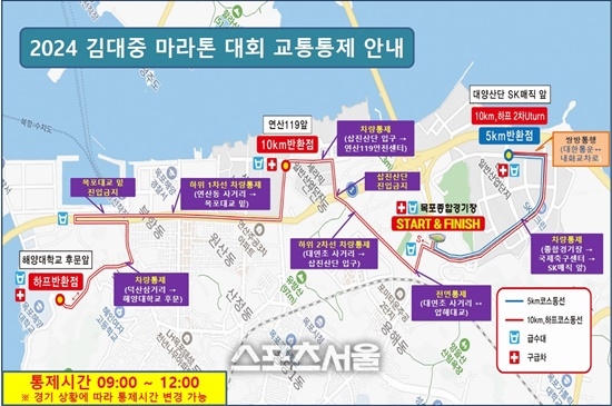 [스포츠서울|조광태기자] 전남 목포시는 오는 24일 목포종합경기장에서 개최되는 2024 김대중 마라톤 대회를 위해 일부 도로의 차량통행이 통제된다고 22일 밝혔다.
