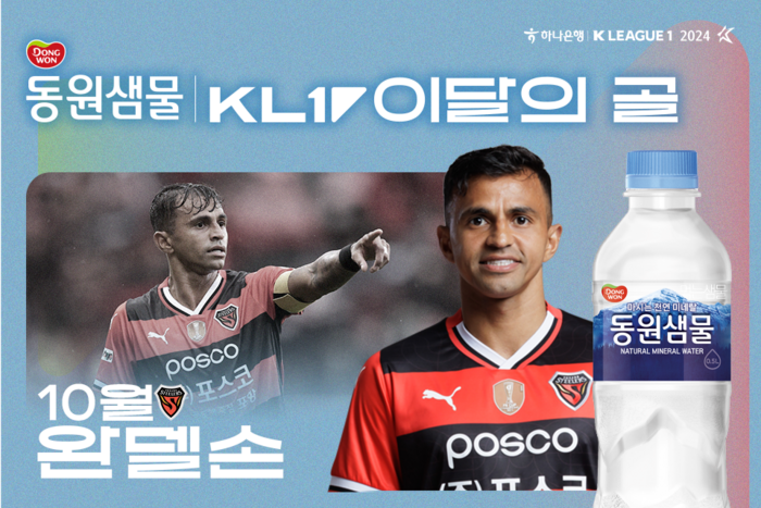 [스포츠서울 | 박준범기자] 포항 완델손이 2024시즌 10월 K리그 ‘마시는 천연 미네랄 동원샘물 이달의 골’을 수상했다.