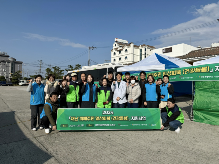 [스포츠서울ㅣ춘천=김기원기자]강원특별자치도사회서비스원(원장 이은영)은 11월 22일(금)과 26일(화) 양일 간 강릉시 경포동과 옥계면 산불 피해 주민 100여 명을 대상으로 「일상 회복 지원사업」을 추진한다고 밝혔다.
