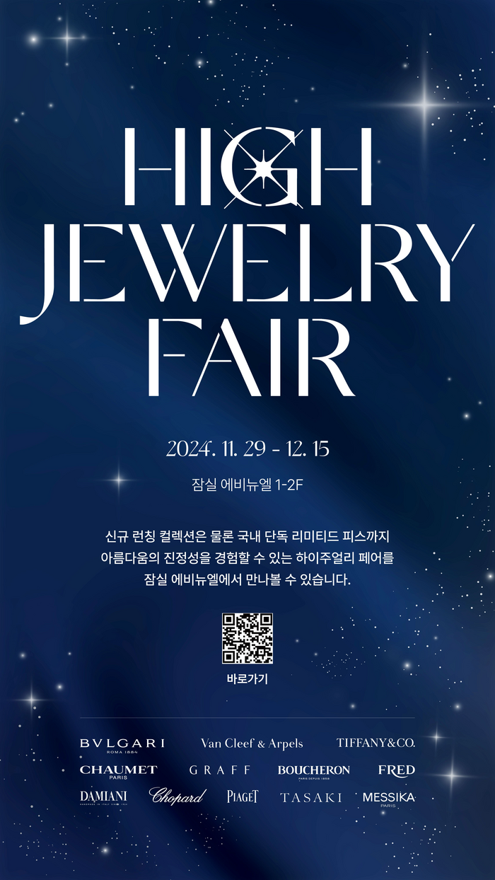 먼저 롯데백화점은 연말 주얼리 구매 고객들을 위한 ‘하이 주얼리 페어’를 올해 처음으로 연다. 에비뉴엘 잠실점 1층과 2층 본매장에서 29일부터 12월 15일까지 열리는 이번 ‘하이 주얼리 페어’는 까르띠에, 불가리, 반클리프아펠, 쇼메 등 총 14개의 해외 유명 하이 주얼리 브랜드가 참여해 각 브랜드의 시그니처 컬렉션부터 특별 제작된 한정판 주얼리까지 총 130여개, 약 400억원 상당의 다양한 주얼리 상품을 선보인다.
