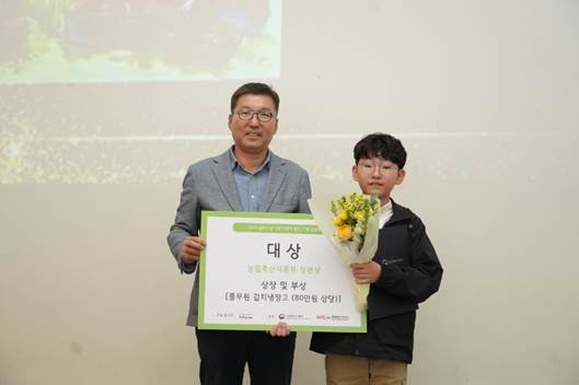 이 밖에도 그림 부문 최우수상을 수상한 서울 광운초 6학년 김규빈 어린이에게는 ㈜풀무원 전략경영원장상, 동시 부문 최우수상을 수상한 서울 서원초 3학년 김소민 어린이에게는 세계김치연구소 소장상 상장을 수여하고, 부상으로 40만원 상당의 풀무원 스팀쿡 마스터 듀얼스팀오븐 20리터와 풀무원 통합 브랜드 쇼핑 플랫폼 #풀무원 상품권 10만원권을 각각 전달했다.