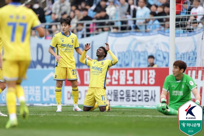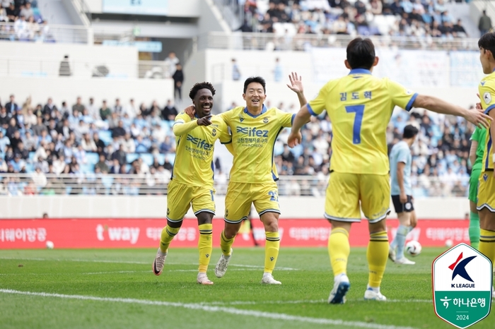 대구는 후반 시작과 함께 김현준, 김진혁, 박세진을 동시에 투입했다. 핵심 수비수 카이오를 제외하며 체력을 안배했다. 인천은 후반 5분 추가골까지 터뜨렸다. 김도혁의 패스를 받은 김보섭이 왼쪽 측면을 완벽하게 뚫어냈다. 이어 올린 크로스를 제르소가 왼발로 마무리해 골망을 흔들었다.