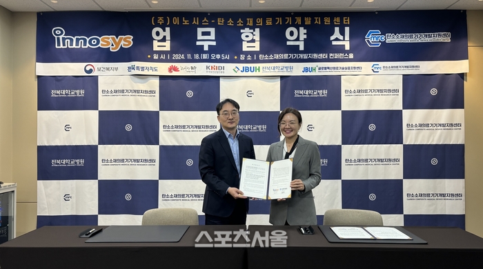 [스포츠서울 l 전주=고봉석 기자] 전북대학교병원(병원장 양종철)이 지난 18일 이노시스 주식회사(대표이사 정주미)와 업무협약을 체결하며, 탄소소재 임플란트 개발 및 글로벌 의료기기 시장 진출을 위한 협력을 본격화했다.