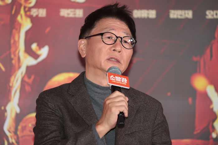 곽경택 감독은 25일 서울 용산구 CGV용산아이파크몰에서 열린 ‘소방관’ 언론시사회에서 “솔직히 말씀 드려서 곽도원 배우 분량을 빼려고 편집하지는 않았다. 영화가 오래있다 개봉하니까 트렌드에 비해서 속도감이 늦었다”며 “어떻게든 재밌게 볼 수 있도록, 초반부에 스피드 올리는데 편집 고민을 많이 했다”고 밝혔다.