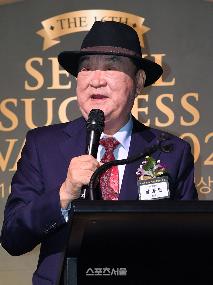 그래미 남종현 회장이 25일 서울 중구 그랜드 하얏트 서울 호텔에서 진행된 ‘제16회 서울 석세스 대상’에서 사회공헌대상을 수상한 뒤 소감을 밝히고 있다.
