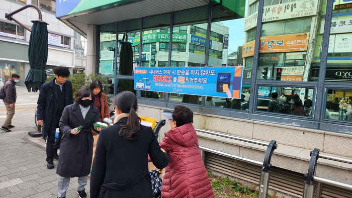 이날 시 대중교통과 직원들은 시민들에게 홍보물을 제공하고 시내버스 노선 최적화를 위해 하차태그가 꼭 필요함을 강조하며 적극적인 참여를 권유했다.