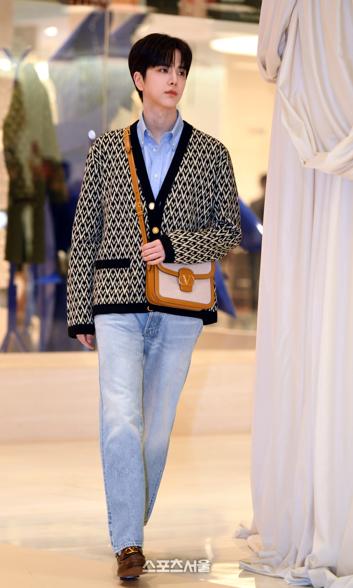 더보이즈 영훈이 26일 여의도 더현대 서울에서 열린 ‘2025 봄 발렌티노 아방 레 데뷰’ 컬렉션 런칭 기념 팝업스토어 포토콜 행사에서 포즈를 취하고 있다.