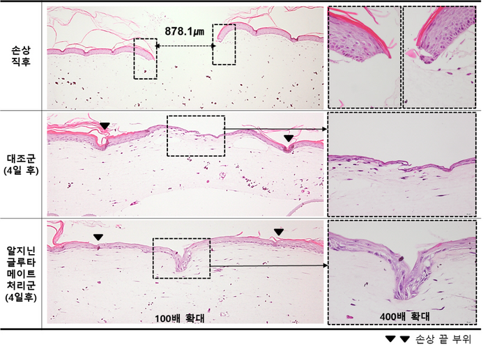 공동 연구를 주도한 곽인숙 한강성심병원 마취통증의학과 교수는 “알지닌 글루타메이트가 함유된 제형을 바른 흉터 부위가 부드러워져 피부 유연성이 증가했다”고 설명했다. 연구에 참여한 김혜원 강남성심병원 피부과 교수는 “알지닌 글루타메이트 제형이 피부 장벽 기능을 회복시켜 가려움증 개선에 도움을 줬다”고 분석했다.
