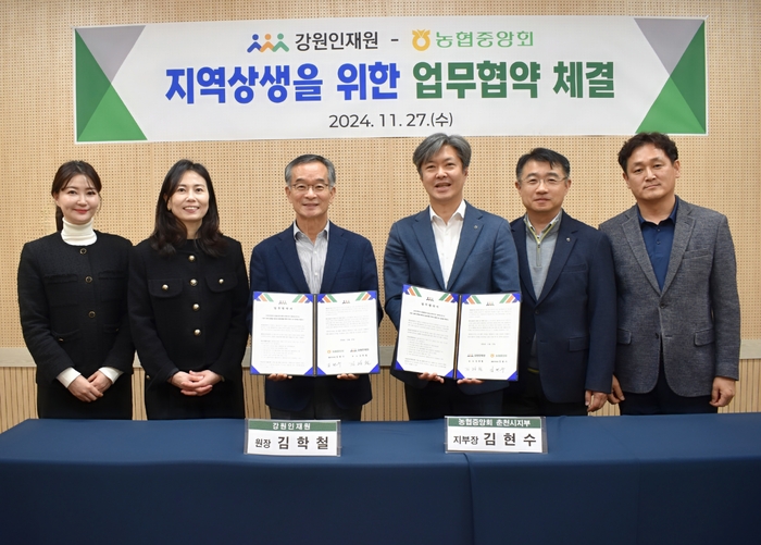 [스포츠서울ㅣ춘천=김기원기자]강원인재원(원장 김학철)은 지난 27일 농협중앙회 춘천시지부(지부장 김현수)와 업무협약을 체결했다고 밝혔다.