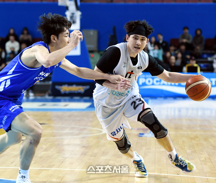 수원 KT 박준영이 28일 서울 잠실실내체육관에서 열린 2024~2025 프로농구 서울 삼성과 경기에서 드리블을 하고 있다.