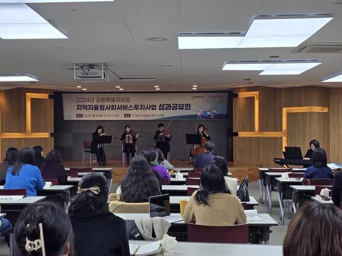 [스포츠서울ㅣ춘천=김기원기자]강원특별자치도 사회서비스원(원장 이은영)은 12월 2일 케이티앤지(KT&G) 상상마당 춘천에서 도내 지역사회서비스 관계자 100여 명이 참석한 가운데 지역자율형 사회서비스투자사업 성과공유회를 개최했다.