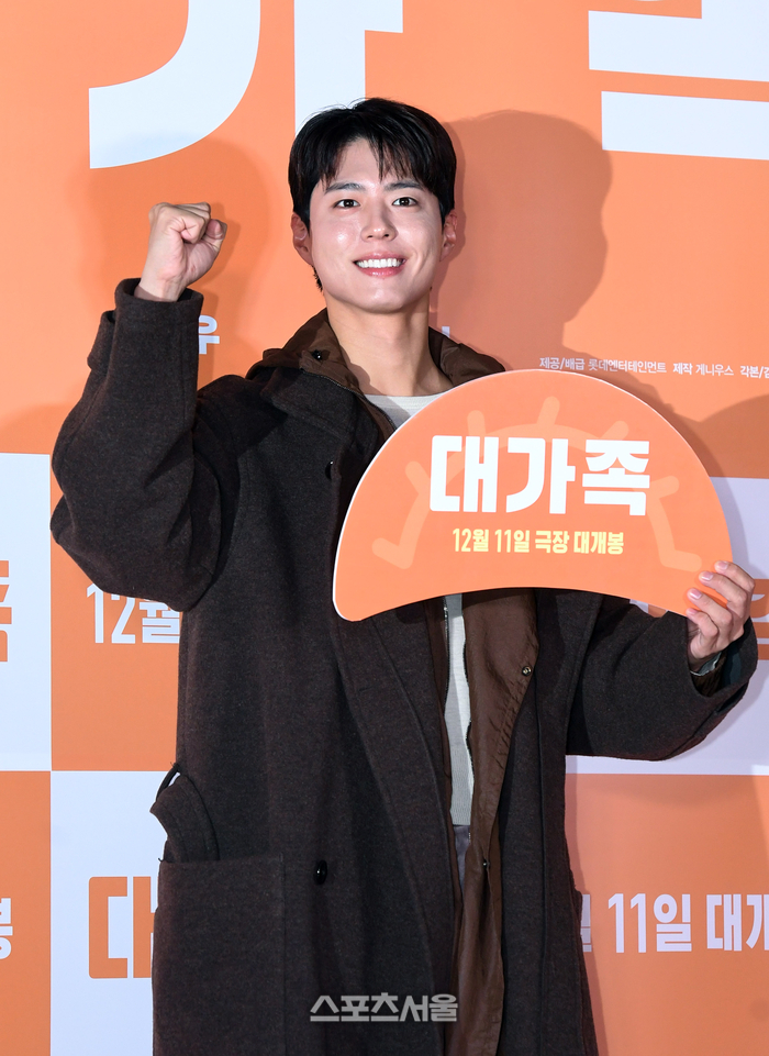 배우 박보검이 2일 서울 송파구 롯데시네마 월드타워에서 진행된 영화 ‘대가족’ VIP 시사회에 참석하면서 포토월 앞에서 포즈를 취하고 있다. 2024. 12. 2.