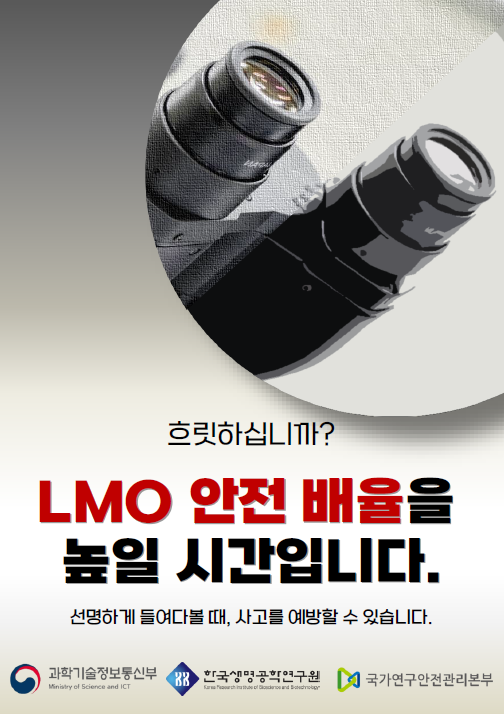 식품진흥원 기능성평가지원팀이 선보인 ‘LMO 안전현미경’ 포스터는 실험실에서 흔히 볼 수 있는 현미경을 활용해, LMO 안전 관리의 필요성과 의의를 직관적이고 쉬운 표현으로 전달한 작품이다.