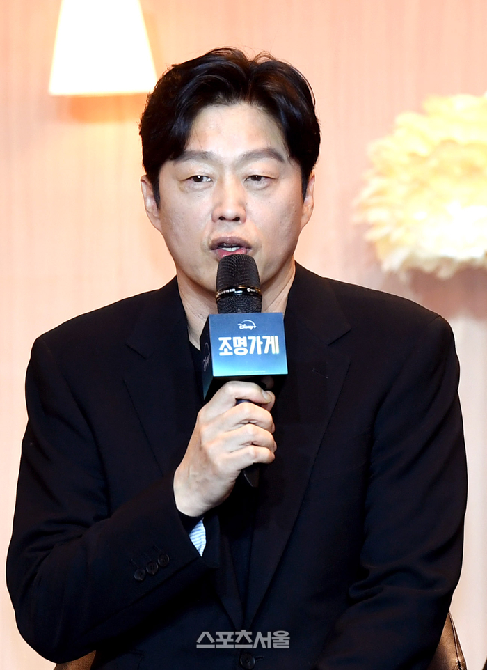 김희원 감독이 3일 서울 강남구 코엑스 컨벤션 그랜드볼룸에서 진행된 디즈니+ ‘조명가게’ 제작발표회에서 인사말을 하고 있다.