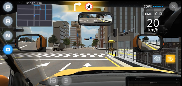 필기시험에서는 도로교통법과 관련해 총 20문항을 15분간 풀어 70점을 넘기면 실기시험에 참여할 기회가 주어진다. 도로주행은 운전자들이 운전상황에서 숙지해야 할 상황을 엄선하여 게임에 녹였으며, 어렵고 헛갈리는 도로주행 상황을 구현해 현실감을 높였다.