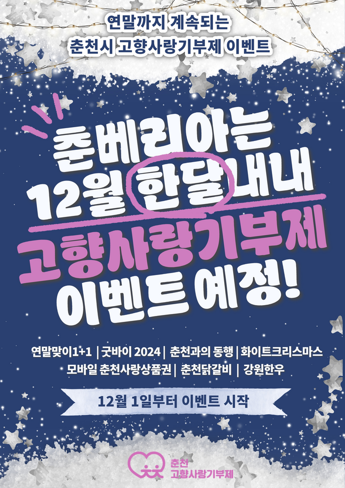 행사는 총 네 가지로 ▲연말 맞이 원플러스원(1+1) ▲굿바이 2024 ▲춘천과의 동행 인연 ▲화이트 크리스마스다.