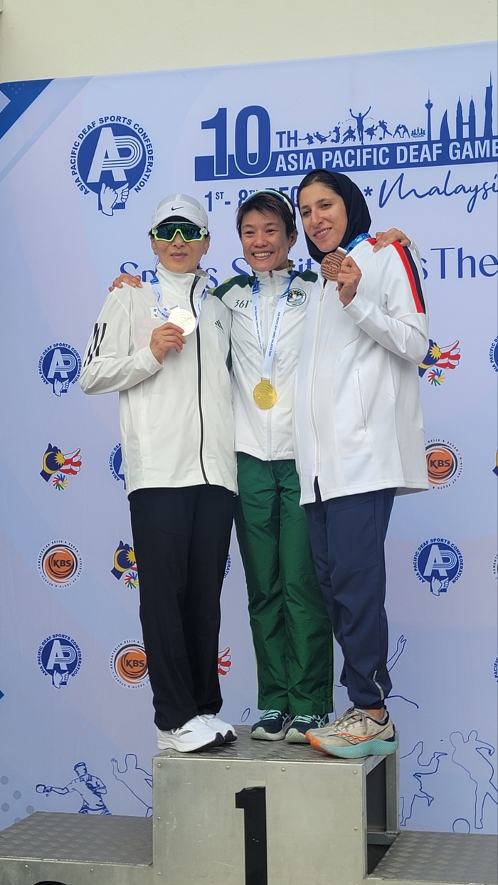[스포츠서울 | 김동영 기자] 4일 말레이시아 쿠알라룸프르에서 열린 제10회 쿠알라룸푸르 아시아태평양농아인게임 육상 여자 5000m에서 오상미(인천본부세관 운영과)가 은메달을 획득했으며, 여자 창던지기 종목에서 이미옥(한국전력)이 31.1m로 동메달을 기록했다.
