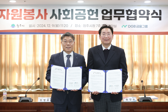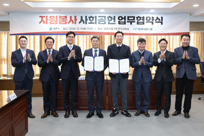 원강수 원주시장은 “우리 사회의 따뜻한 변화를 만들어가기 위해 노력하시는 DGB금융그룹에 감사드린다”며 “이번 자원봉사 사회공헌 업무협약을 통한 DGB금융그룹과의 유기적인 협력으로 원주시 자원봉사단체 육성과 활성화에 큰 변화를 기대한다”고 전했다.