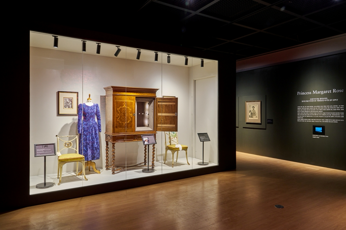 이번 전시에서는 △엘리자베스 2세의 무도회 드레스 △마거릿 공주의 아쿠아마린 귀걸이 △다이애나비의 웨딩 베일 등 영국 왕실의 역사적 가치가 있는 소장품들을 공개했다.