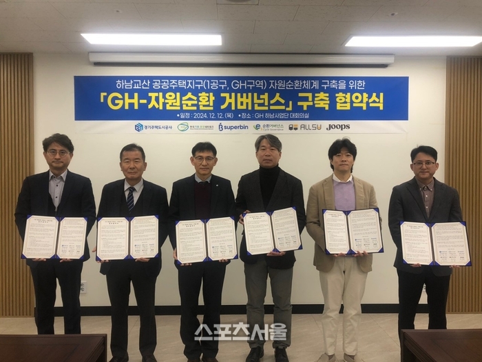 〔스포츠서울│수원=좌승훈기자〕경기주택도시공사(GH)는 12일 GH 하남사업단 대회의실에서 하남교산 공공주택지구(1공구)의 폐기물 처리와 자원순환 체계 구축을 위한 ‘GH 자원순환 거버넌스’ 협약식과 발대식을 가졌다.