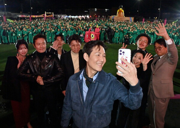 지난 12일(현지시간) 미국 LACC에서 펼쳐진 LA 팬 이벤트는 극 중 기훈(이정재 분)의 456번을 테마로, ‘오징어 게임’ 트레이닝복을 입은 약 2000명을 대상으로 4.56km 러닝 레이스가 펼쳐졌다. 팬 이벤트 현장에 도착한 황동혁 감독과 배우들은 환한 표정과 에너지 넘치는 인사로 팬들의 열띤 환호에 화답했다.