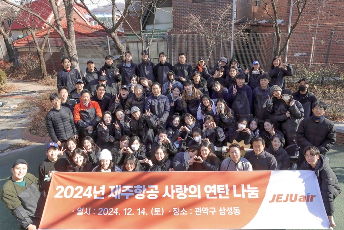 제주항공 임직원 및 가족 70명은 14일 서울시 관악구 삼성동에 거주하는 주민들에게 연탄 약 1만2000장을 전달했다.
