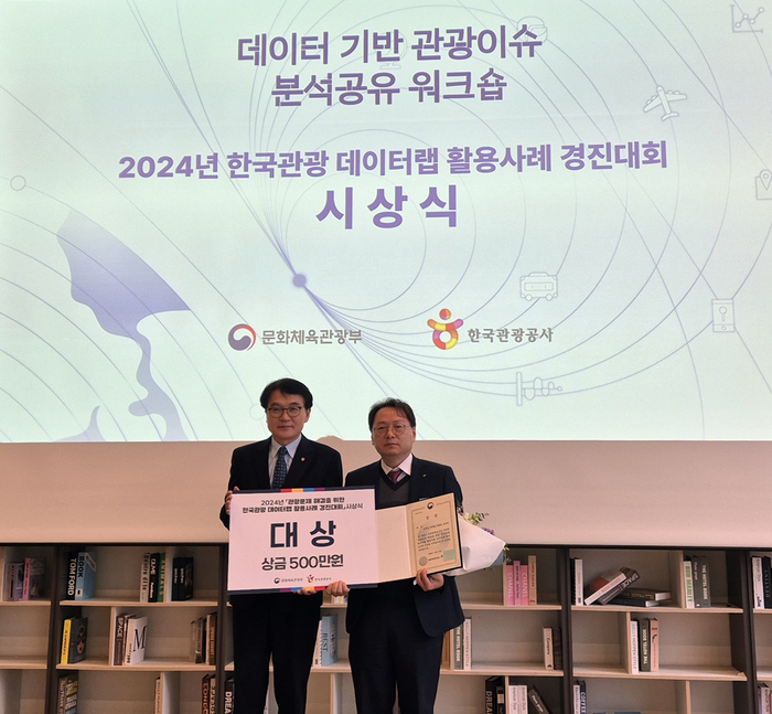 한국도로교통공단(이사장 김희중)은 13일(금) 문화체육관광부가 주최하고 한국관광공사가 주관한 ‘한국관광 데이터랩 활용사례 경진대회’에서 대상인 문화체육관광부 장관상을 수상했다고 밝혔다.