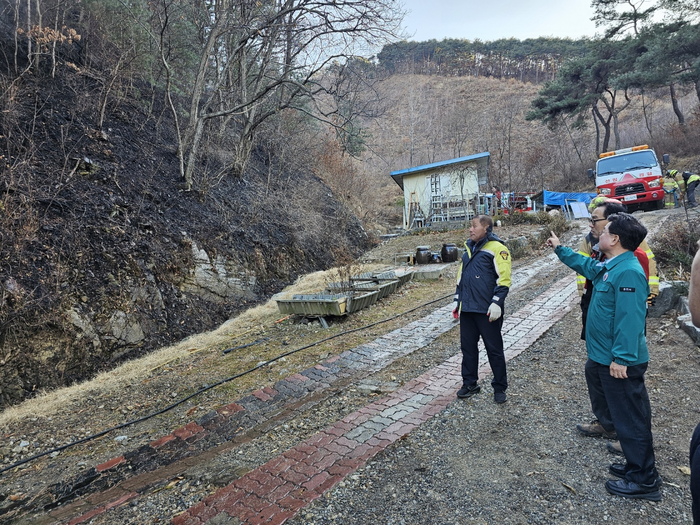 [스포츠서울ㅣ춘천=김기원기자]육동한 춘천시장은 18일 춘천시 동면 월곡리 야산에서 발생한 산불 현장을 찾아 점검했다.