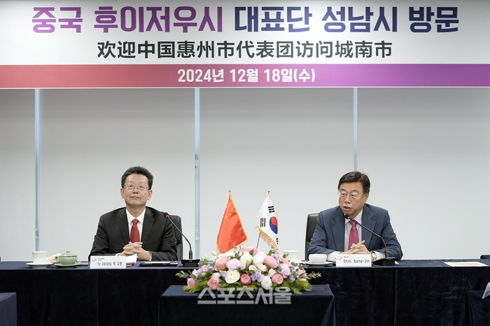 〔스포츠서울│성남=좌승훈기자〕 신상진 성남시장은 18일 시청 4층 제1회의실에서 위자량 중국 후이저우시 부시장 등 대표단을 접견하고, 노인복지를 비롯한 양 도시 간 교류 활성화 방안을 논의했다.