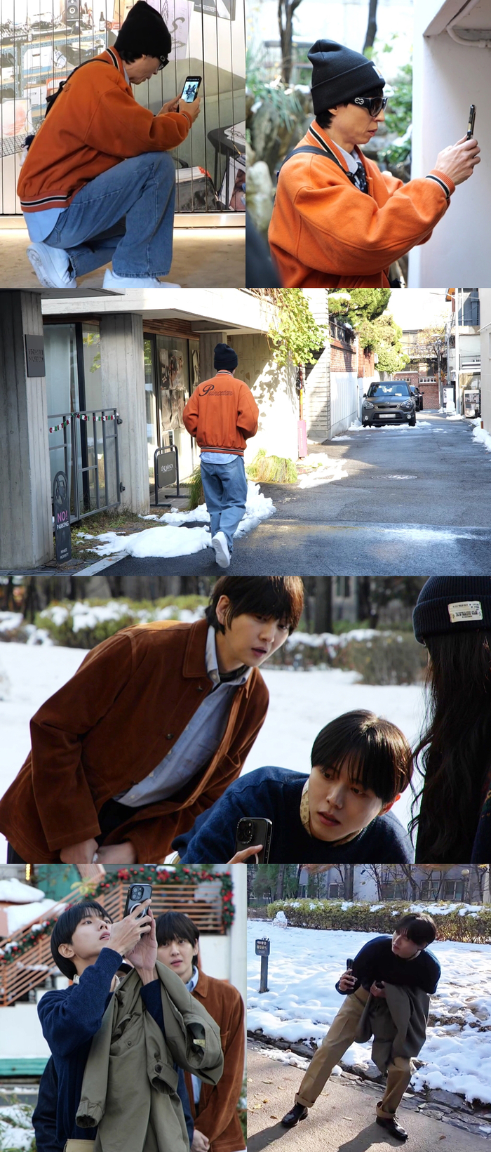 공개된 사진 속에는 오늘의 패션을 사진으로 남기는 유재석, 주우재의 모습이 담겨 있어 눈길을 끈다. 평소 요즘 SNS 감성으로 사진을 잘 찍는다고 말해왔던 주우재는 전문가 포스를 뿜어내며 사진을 찍고 있다.